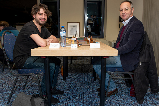 Uiteraard gingen de twee grootmeesters in het gezelschap er wel even goed voor zitten. Predrag Nikolic koos met zwart voor het aangenomen damegambiet en was al snel uit de problemen. Hij ruilde een loper tegen een wit paard om de witte pionnenstructuur wat te verzwakken. De stelling met tegengestelde rokades die daarna ontstond was in dynamisch evenwicht met wederzijdse kansen. Doordat Ivo Wantola te veel stukken bleef ruilen kreeg zwart uiteindelijk een zeer kansrijk dame-eindspel wat vakkundig tot winst werd gevoerd.