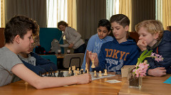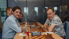Eerste zet uitgevoerd door wethouder Yvonne van Delft op het bord van Loek van Wely