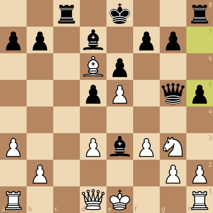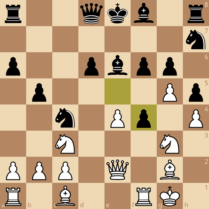 Van Roon en Beerdsen waren in de 3..Pf6 4.Pg5 d5 variant van het Italiaans bezig. Onderstaand diagram is kenmerkend voor deze variant. Wit heeft wat pionnen meer maar zijn structuur is vernageld. Tel daarbij twee sterke lopers van zwart als compensatie en deze variant levert gegarandeerd spektakel op.